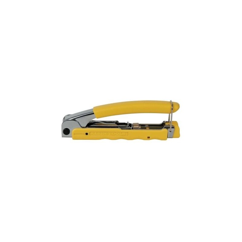 The Klein Tools Compression Crimper is designed to crimp compression BNC, F and RCA connectors to coaxial cable. Its body is made with steel for strength and is corrosion resistant for added durability. It features a universal plunger that ensures accurate crimps on multiple types of connectors and an integrated handle lock for easy storage.
